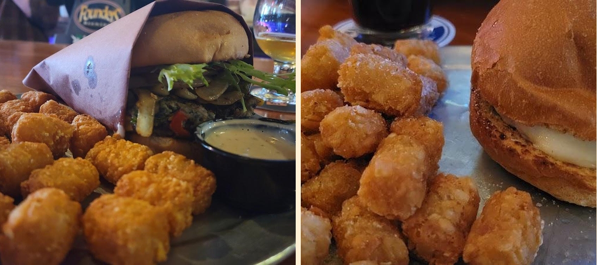 Customers love the burgers at The Nyx. They praise their juiciness and flavor, often recommending the signature Dutcher Burger. Tater tots also receive high marks for their taste and texture, serving as a favorite side dish.